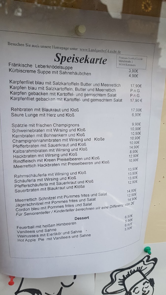Welcome to Pension Gasthof Leicht, a hidden gem nestled in the heart of Kemmern, Germany. This Franconian restaurant and guest house excels in delivering hearty, quality dishes at surprisingly affordable prices. The menu features traditional Bavarian cuisine, showcasing local ingredients that highlight the warmth and charm of the region.